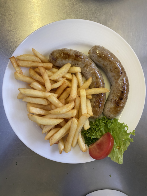 - 1 Bratwurst oder 2 Bratwürste mit Pommes